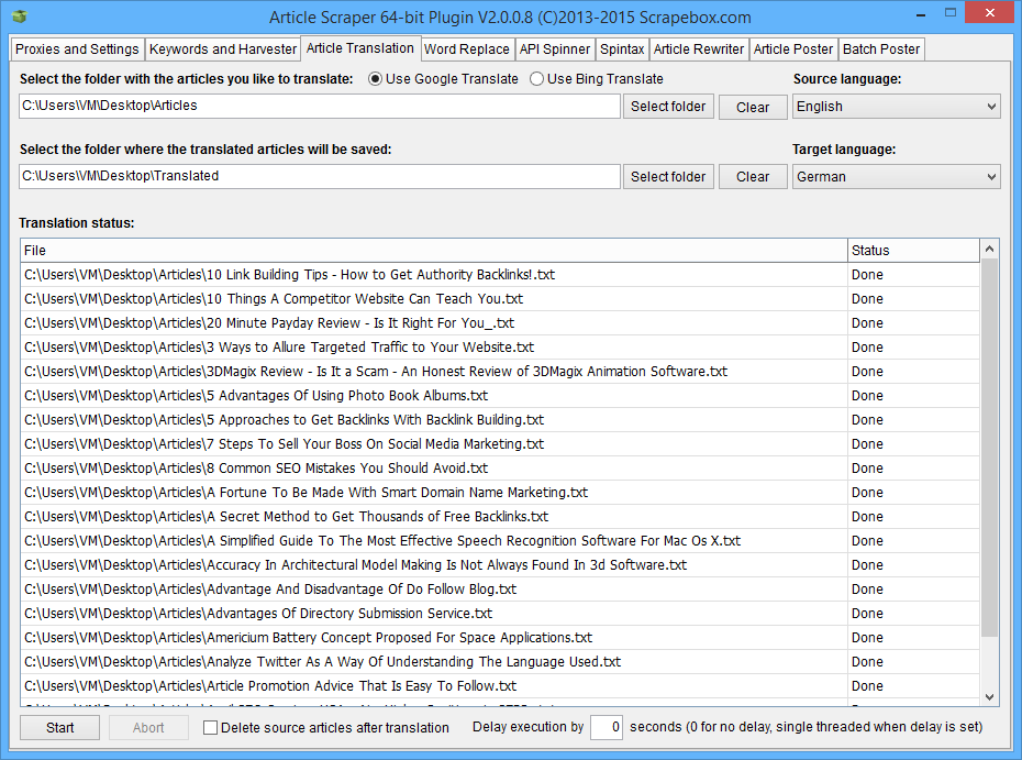 By leveraging the power of both Google and Bing translate engines, you are able to convert articles in to other languages and still retain a high readability and accurate article.