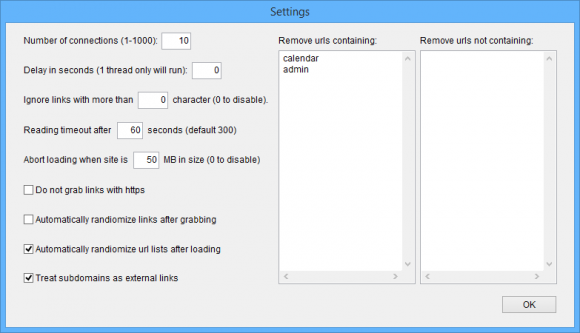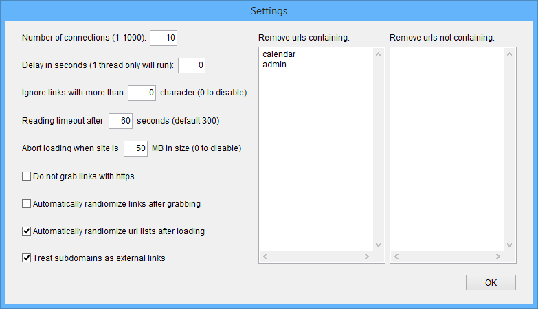 There’s even options to scrape or ignore https URL’s, randomize your lists and treat subdomains as external links or internal links.